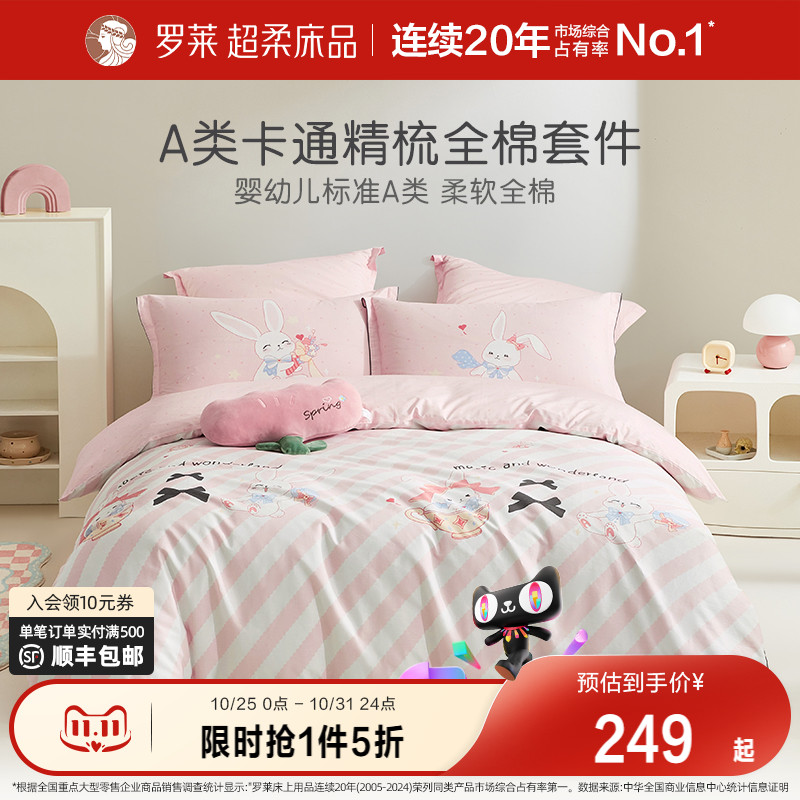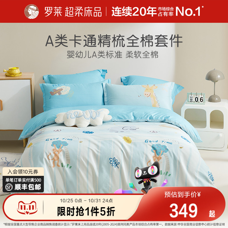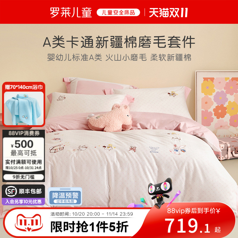 罗莱家纺儿童磨毛三四件套加厚保暖纯棉全棉被套双人床单学生宿舍