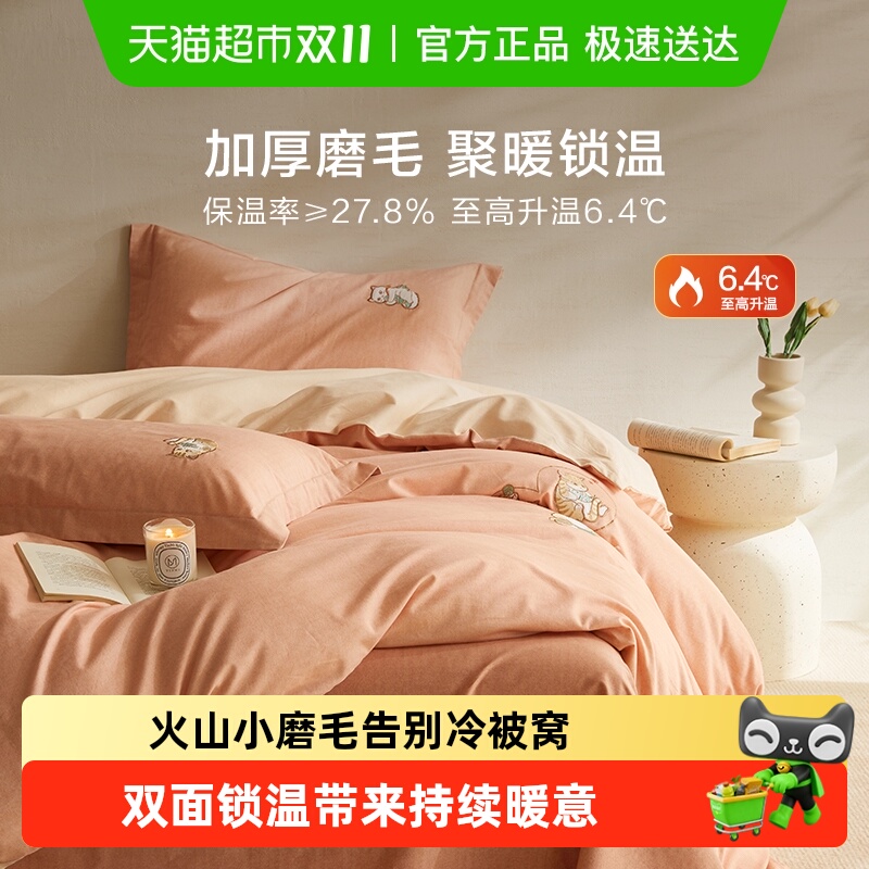 罗莱家纺秋冬新款全棉加厚磨毛保暖床单被套双人床四件套床品学生
