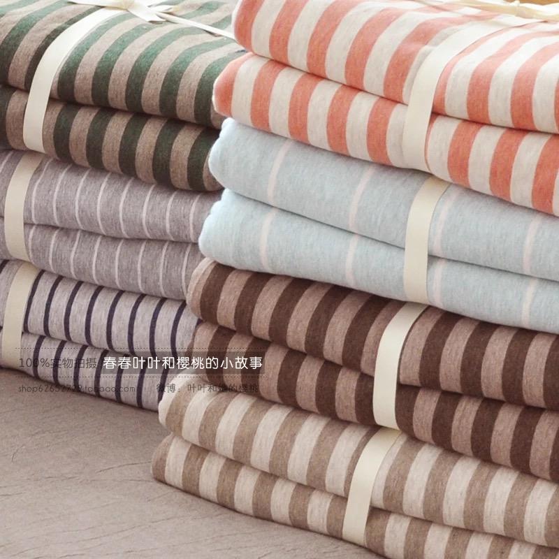 秋冬款保暖加厚纯棉磨毛简约北欧条纹全棉床单被套双人床上四件套