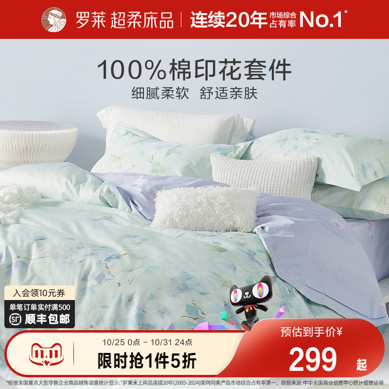 罗莱生活LOVO乐蜗家纺床上四件套田园全棉纯棉被套双人床单三件套