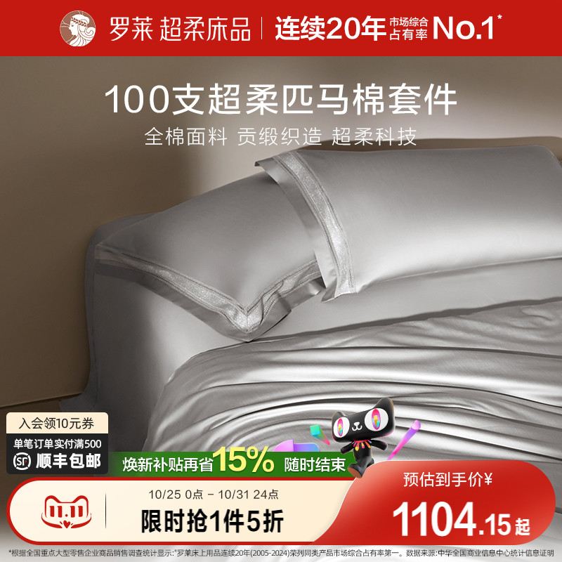 罗莱家纺新品四件套60支全棉纯棉高支贡缎床单被套双人床上用品