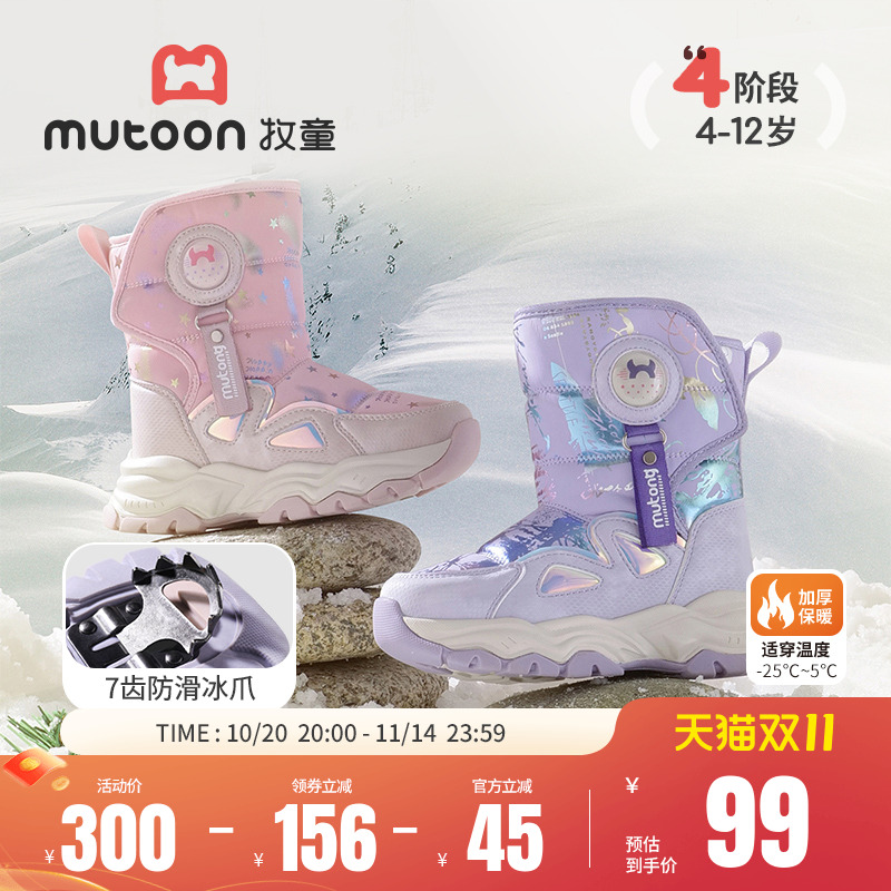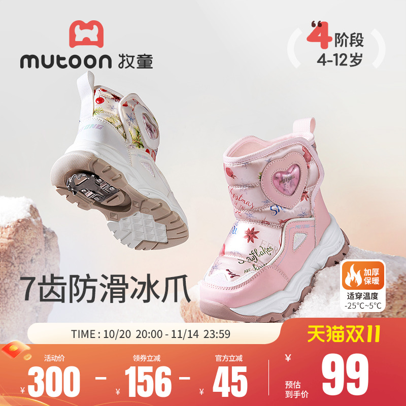 牧童女童雪地靴冬季东北冰爪加绒保暖时尚儿童大棉靴加厚防水防滑