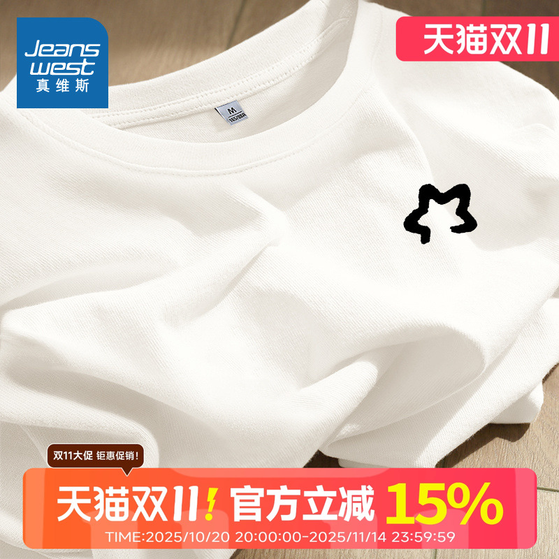 KMV真维斯白色短袖t恤女士2025新款夏季半袖正肩宽松休闲运动体恤