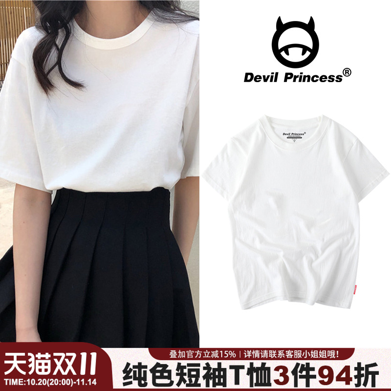 one more白色短袖t恤女夏季2025新款纯棉半袖女士正肩巨好看上衣Y