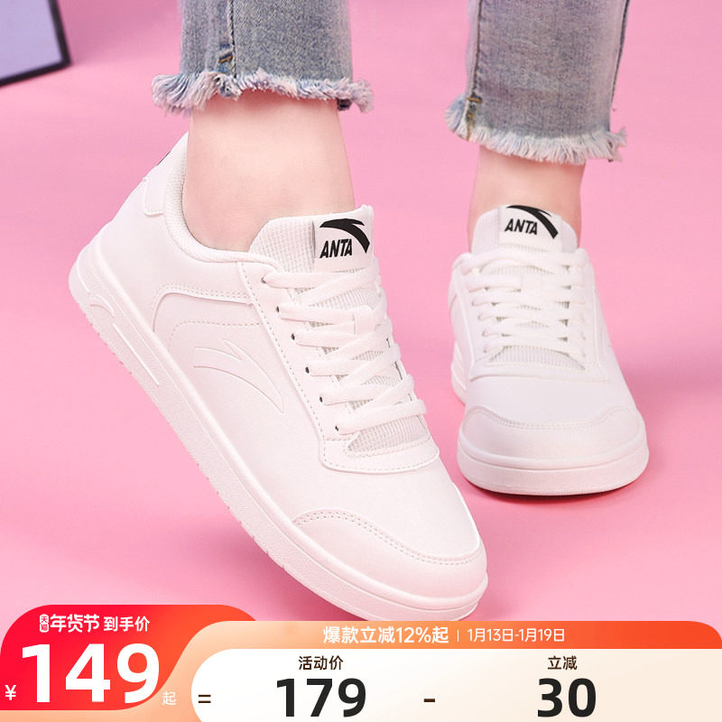 安踏小白鞋板鞋女款2026新款春季官方正品皮面纯白色休闲运动女鞋
