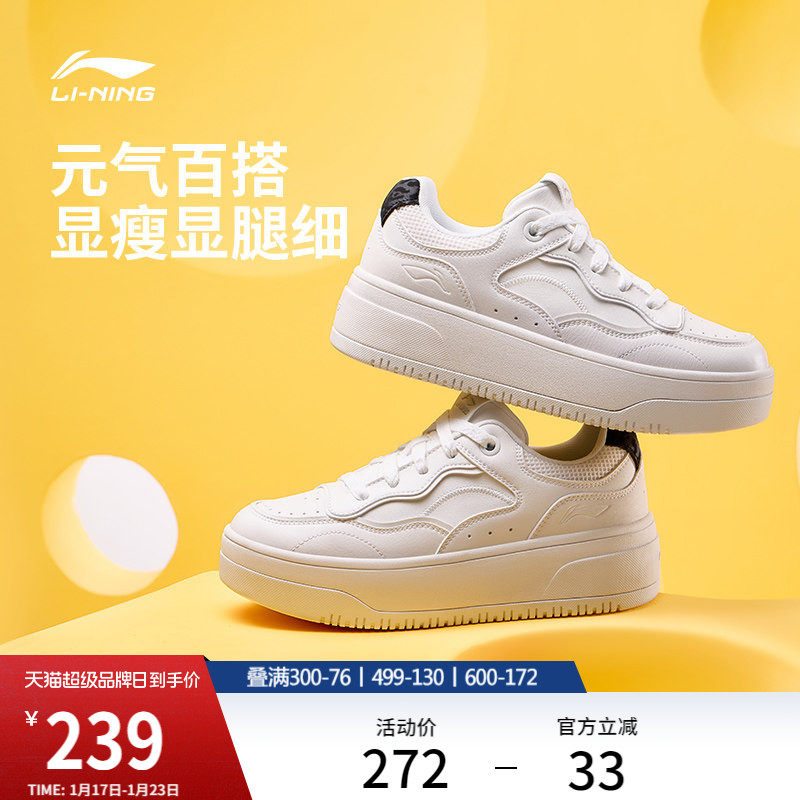 李宁奶酪2丨休闲鞋女鞋百搭新款鞋子厚底板鞋增高白色运动鞋女款