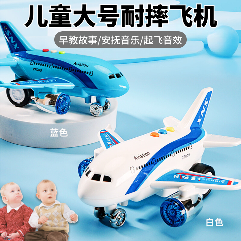 儿童大号惯性飞机小女孩音乐益智声光仿真模型2岁男宝宝玩具3礼物