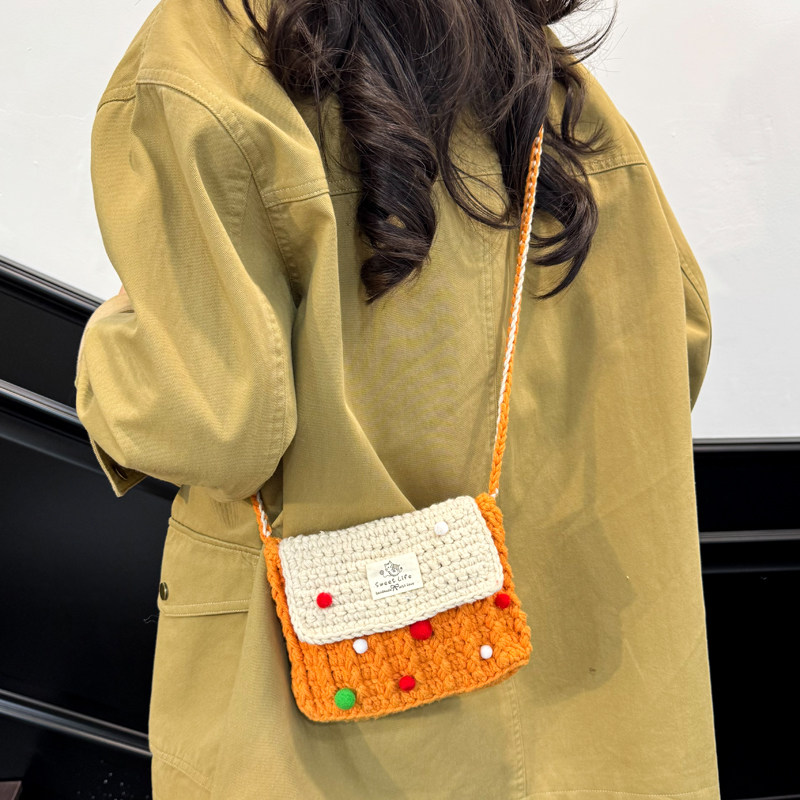 手工编织毛线小包女斜挎包小方包2025新款潮时尚简约日韩休闲女包
