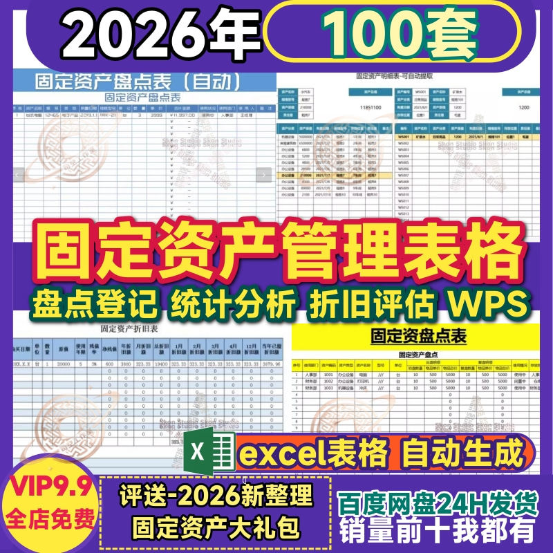 excel电子表格公司企业固定资产管理盘点折旧报废登记台账统计