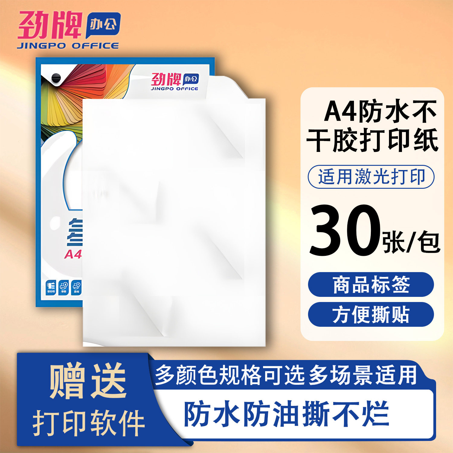劲牌A4不干胶打印纸防水标签内切割标签合成纸纸激光打印防水防油撕不烂彩色贴纸固定资产管理标签