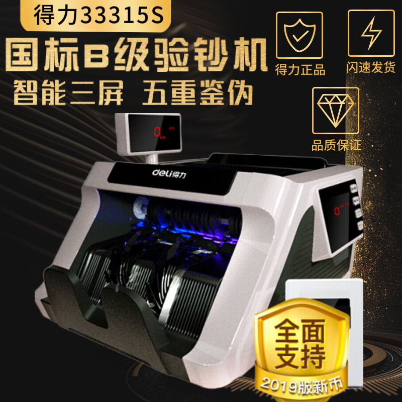 得力33315S点钞机2025新版人民币B类验钞机 智能三屏商用家用收银支付语音数钱机数钞机33316s