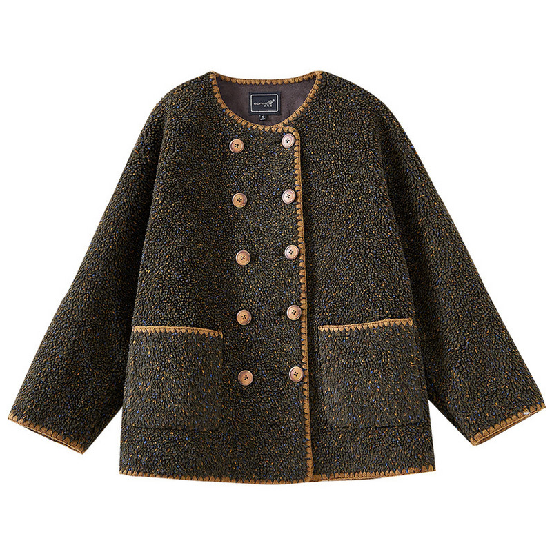 【年终大清仓】V领时尚毛呢短外套直筒休闲气质厚大衣CQ080