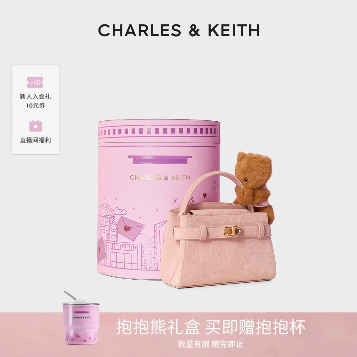 CHARLES&KEITH26新款CK2-50270880-4鳄鱼纹单肩凯莉包抱抱熊礼盒