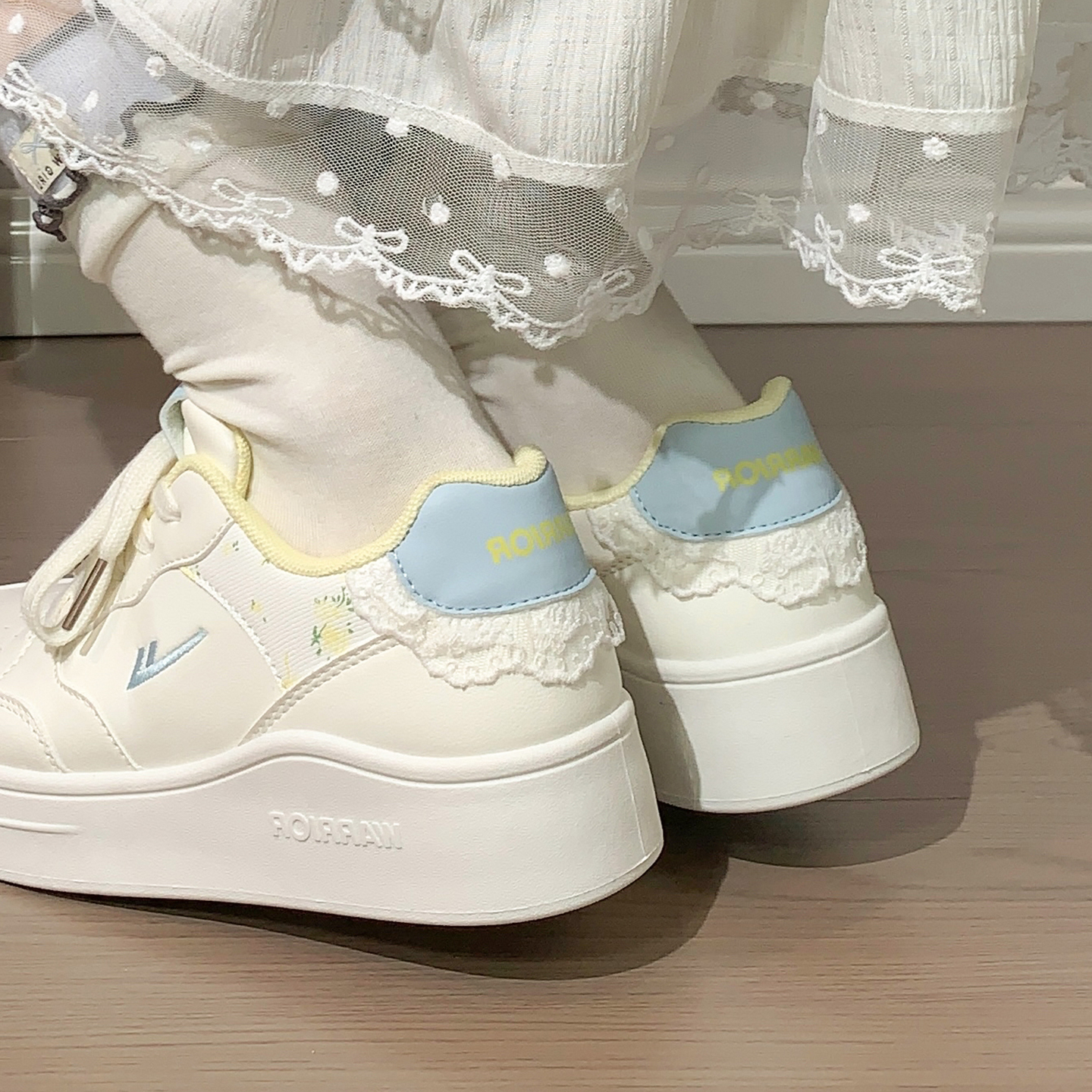 时尚蕾丝德训鞋女款2025秋季新款百搭小白鞋配裙子厚底休闲板鞋女