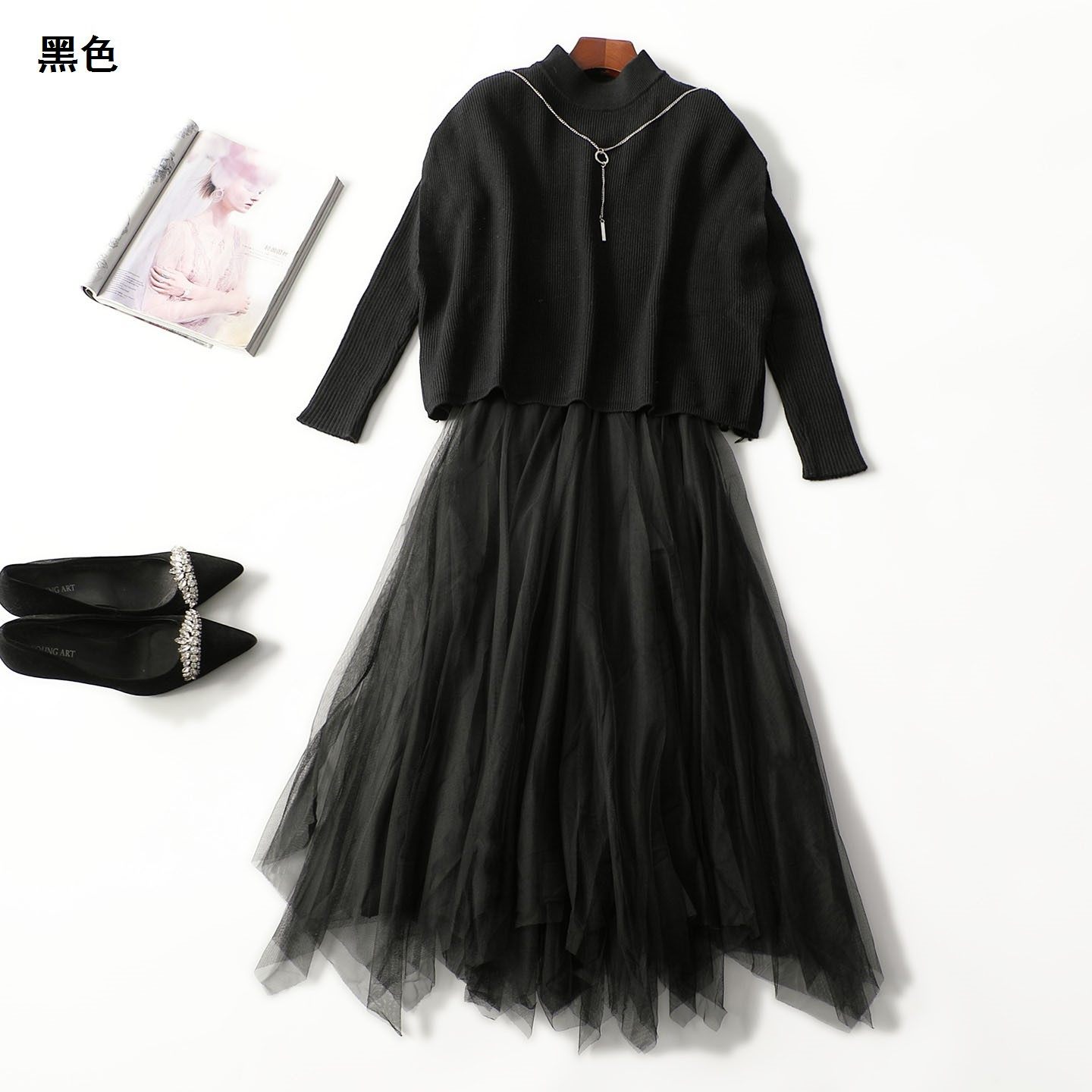 - 高领连衣裙毛衣
