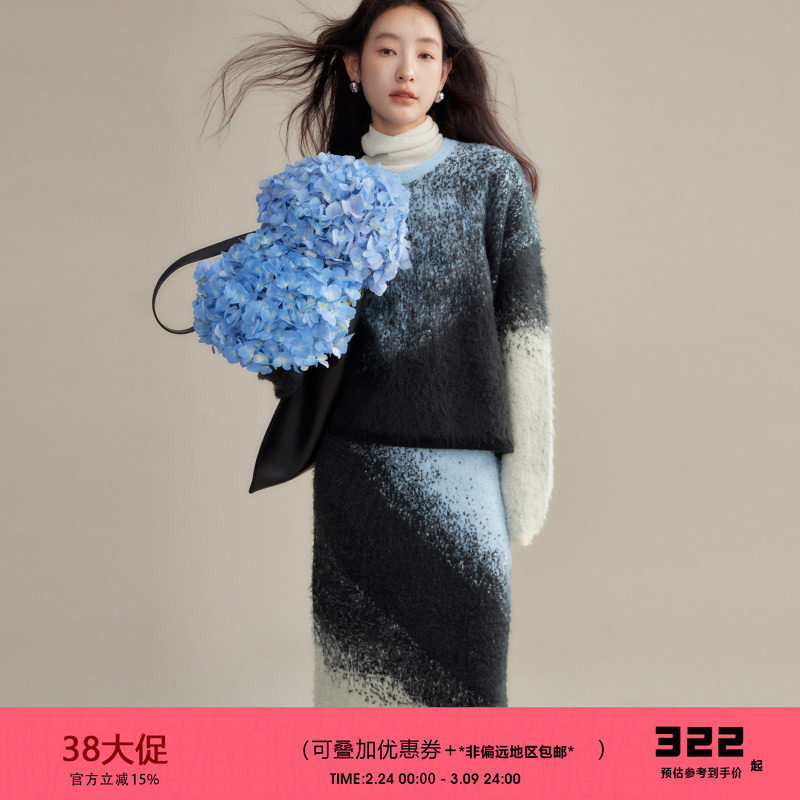 有耳uare原创设计师 尼斯海岸 渐变色爆款毛衣针织衫长裙两件套装