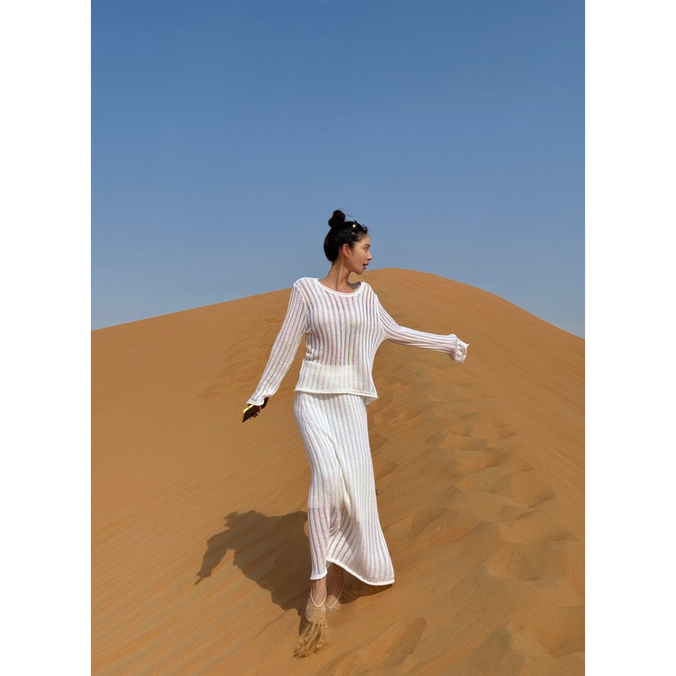 韩APM Place&Apmluxe坑罗纹针织套装气质镂空针织衫长裙两件套女