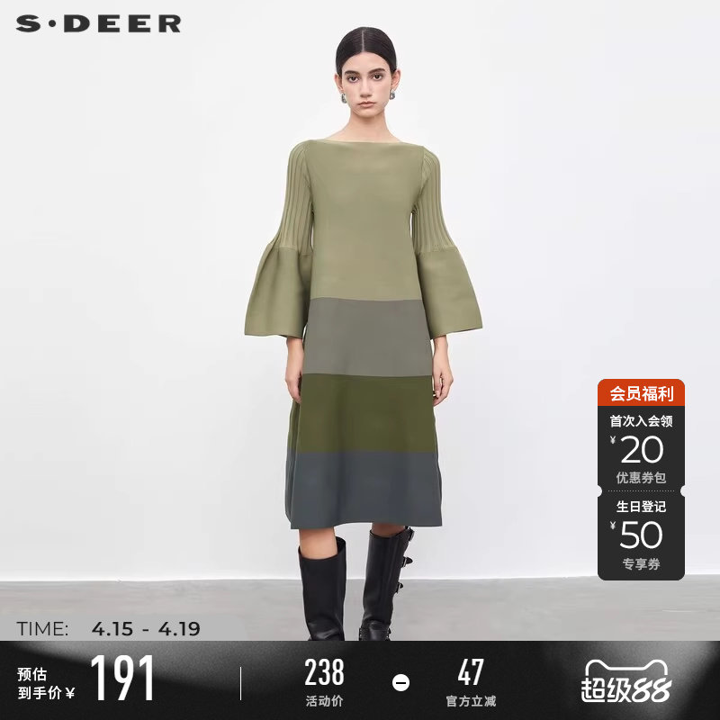 sdeer圣迪奥春秋装时尚圆领喇叭袖慵懒风针织衫长裙S233Z3501