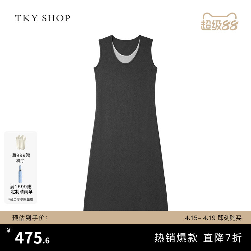 TKY SHOP无袖线衫连衣裙女夏季新款休闲百搭针织裙假两件A字长裙