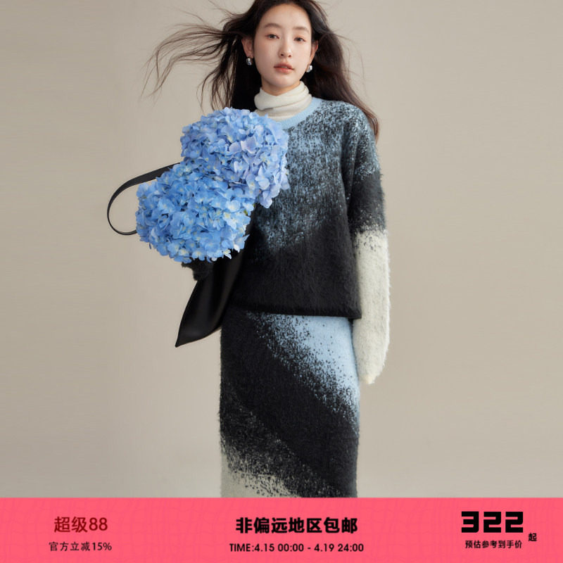 有耳uare原创设计师 尼斯海岸 渐变色爆款毛衣针织衫长裙两件套装