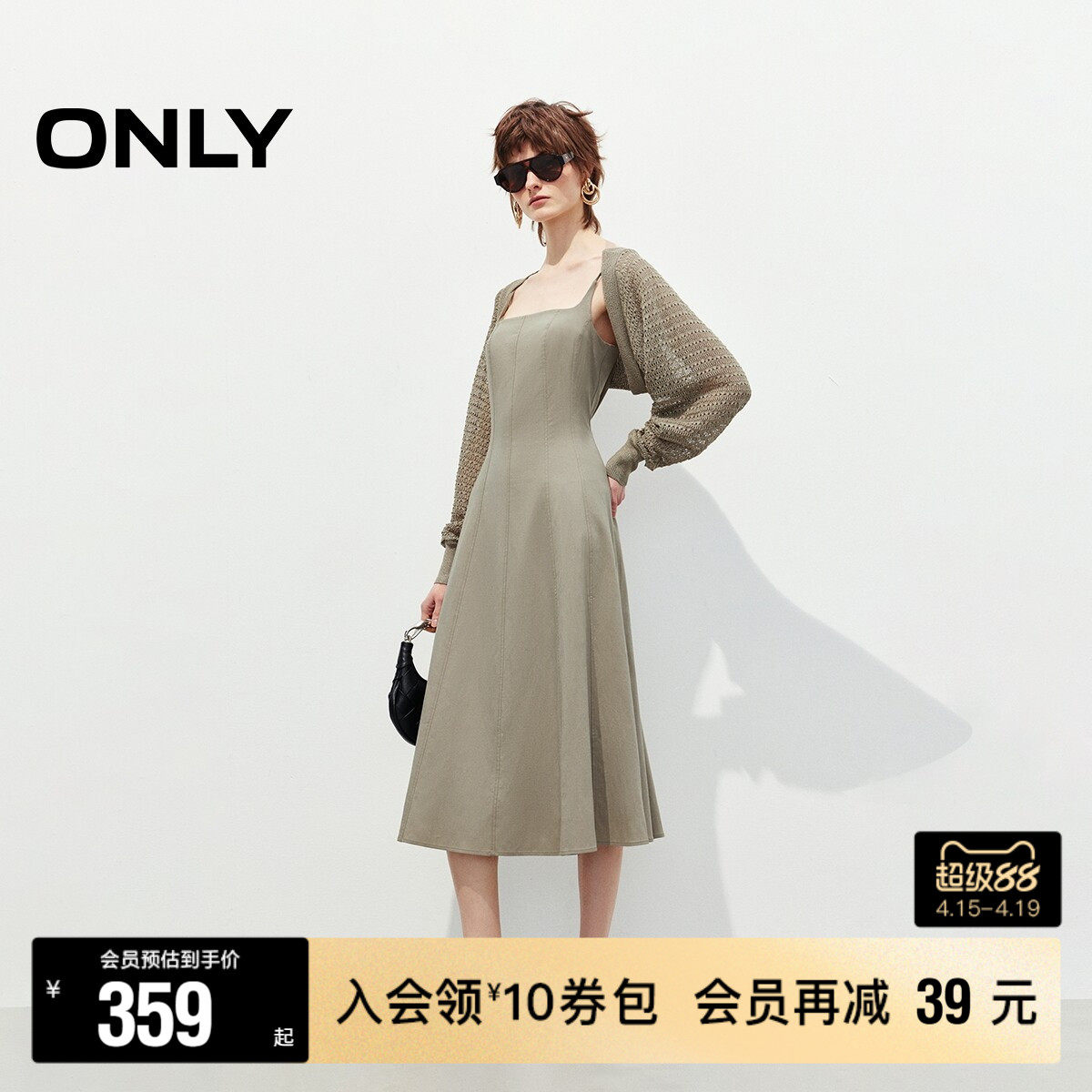 【ONLY奥莱】春季舒适亲肤薄透针织开衫套装吊带中长裙连衣裙女