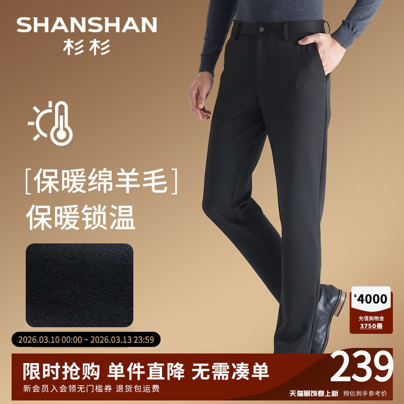 SHANSHAN杉杉羊毛裤子男士新款秋冬西裤男款休闲裤通勤弹力长裤子