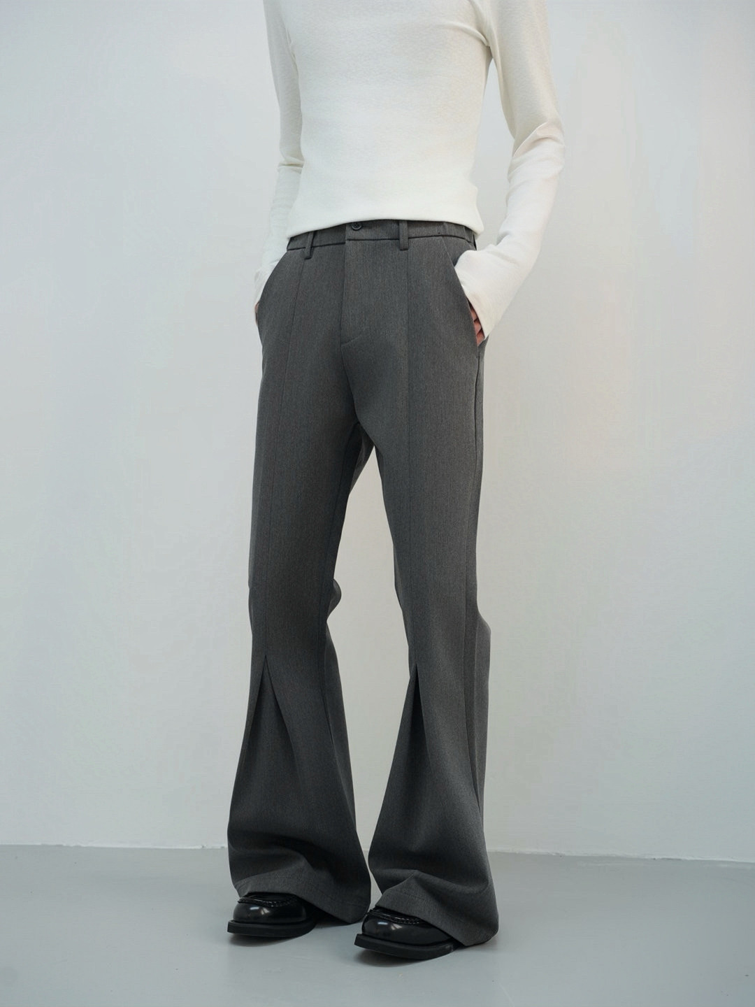 黑色微喇西裤男美式cleanfit喇叭垂感高级感修身直筒西装裤子秋冬