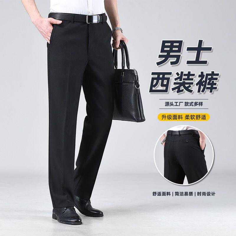 秋冬西裤男宽松直筒高腰休闲免烫弹力男裤中老年爸爸职业西装裤男