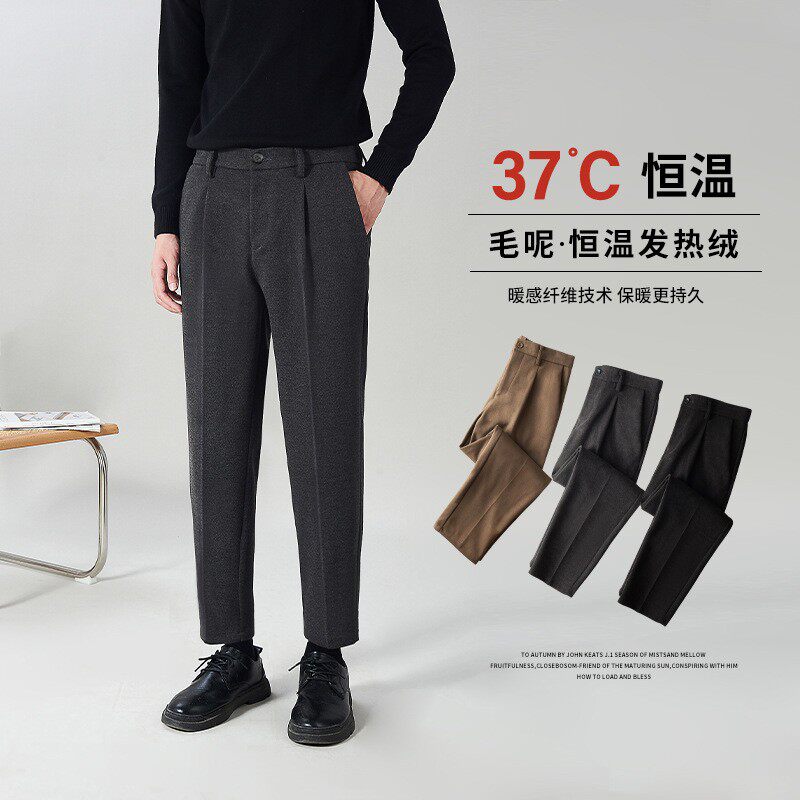 毛呢裤子男九分裤秋冬西裤新款男士商务长裤韩版保暖西装裤休闲裤