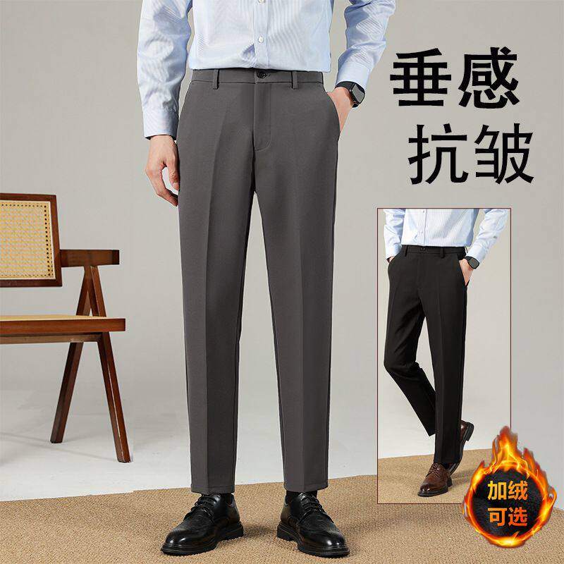 秋冬西裤男羊毛绒加厚款直筒宽松西装裤中年商务休闲时尚斜纹长裤