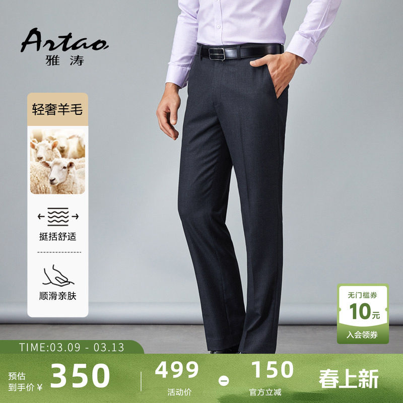 雅涛【羊毛】秋冬西裤商务通勤保暖男士修身牙签条深灰色西装配裤