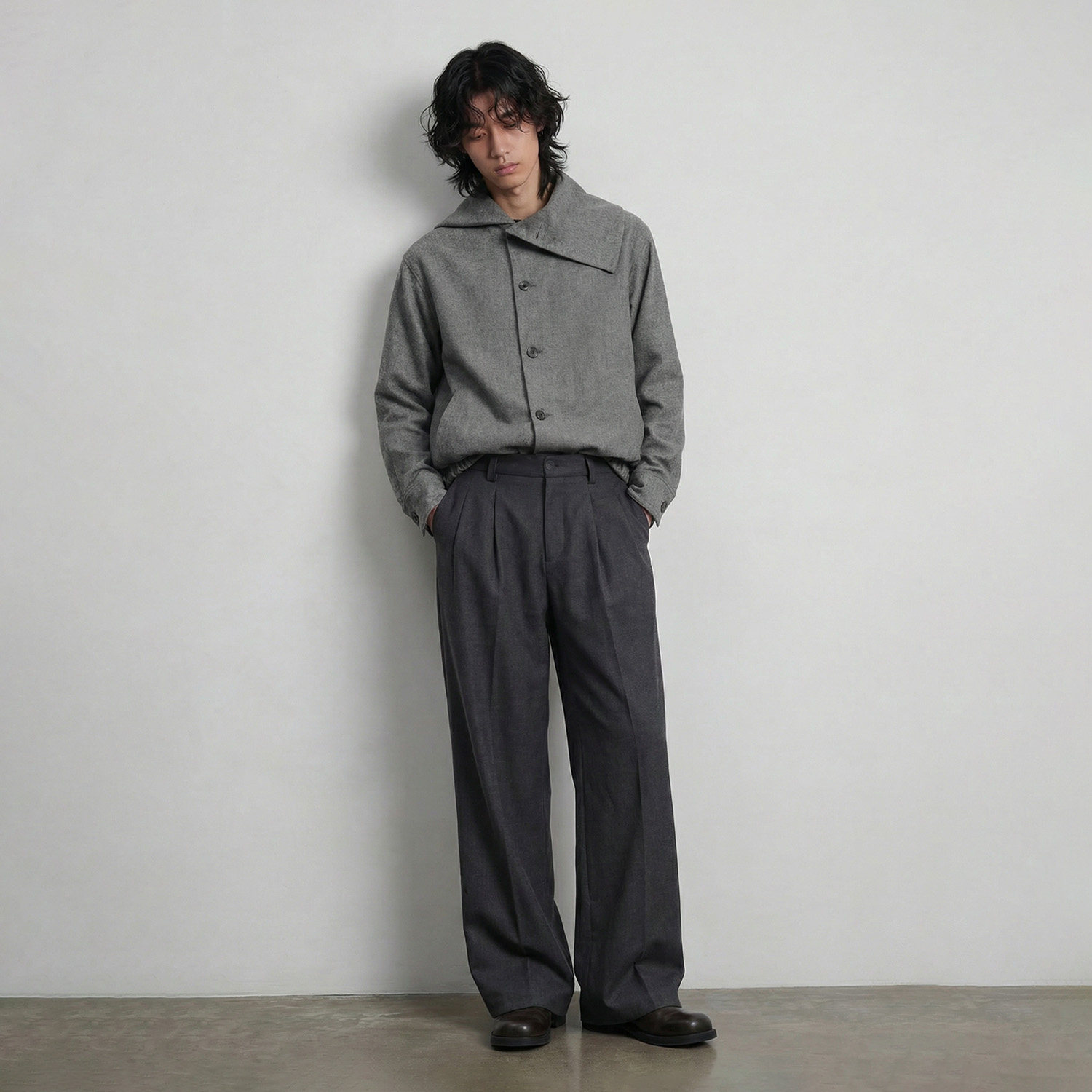 DESERTO 700G重磅自发热毛呢斜门襟直筒宽松休闲通勤秋冬西裤长裤