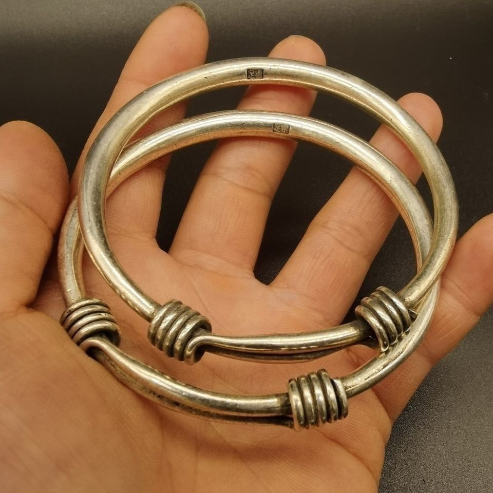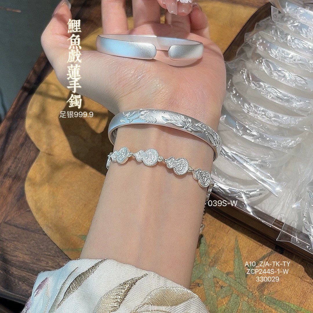 胜银·传统荷花鱼古法足银999.9手镯送中老年开口女式纯银手镯