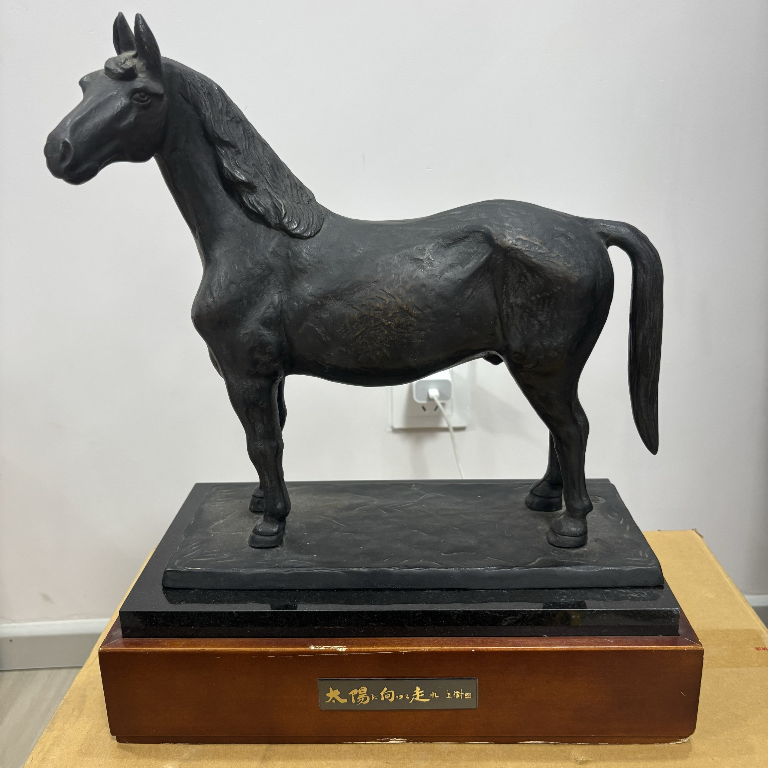 日本带款老铜马摆件,重5.7千克,高32厘米,长29厘米,宽12厘米