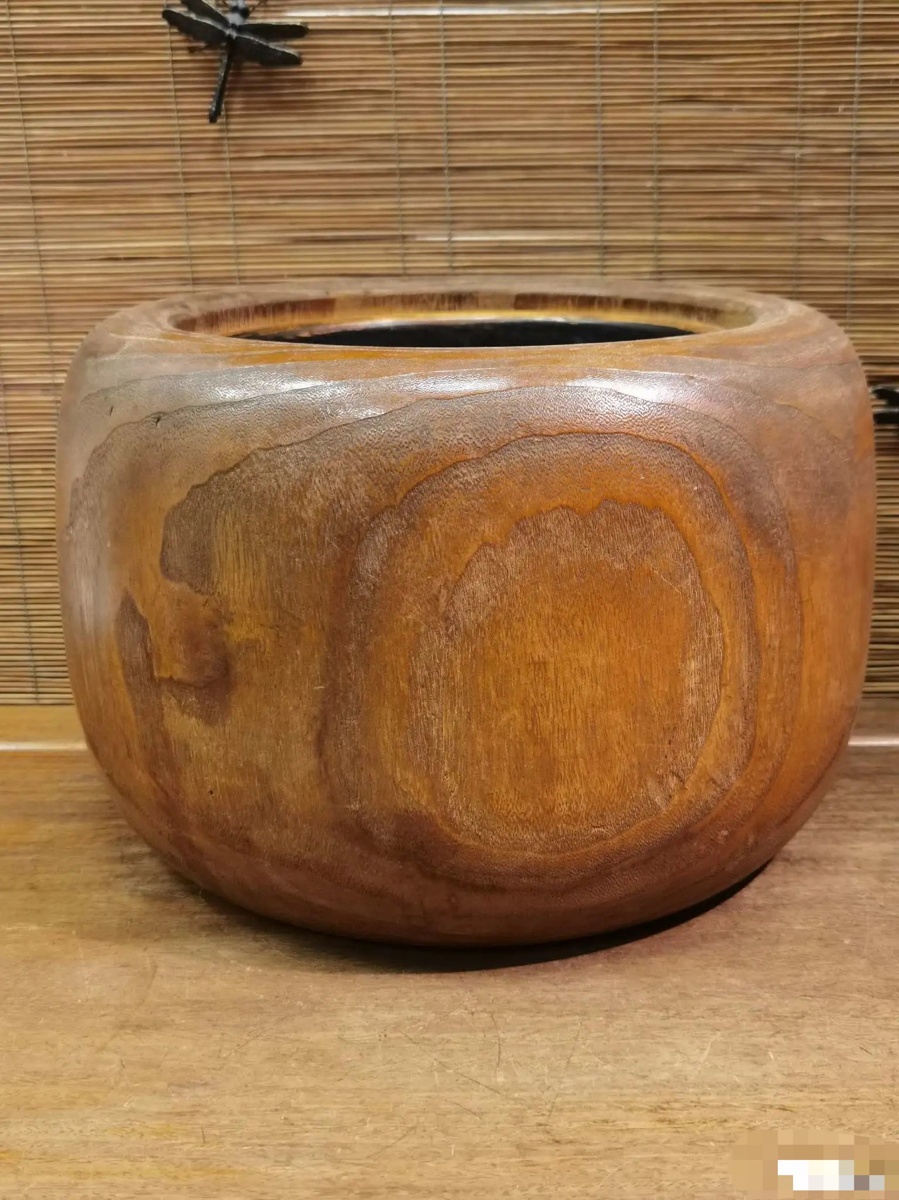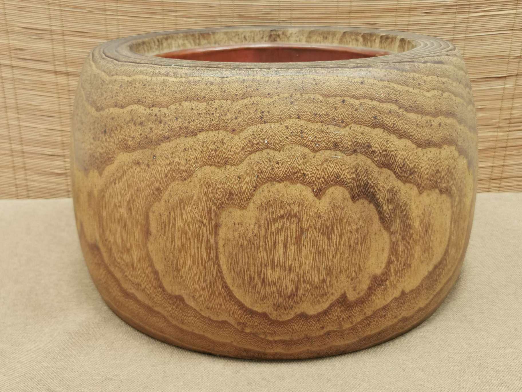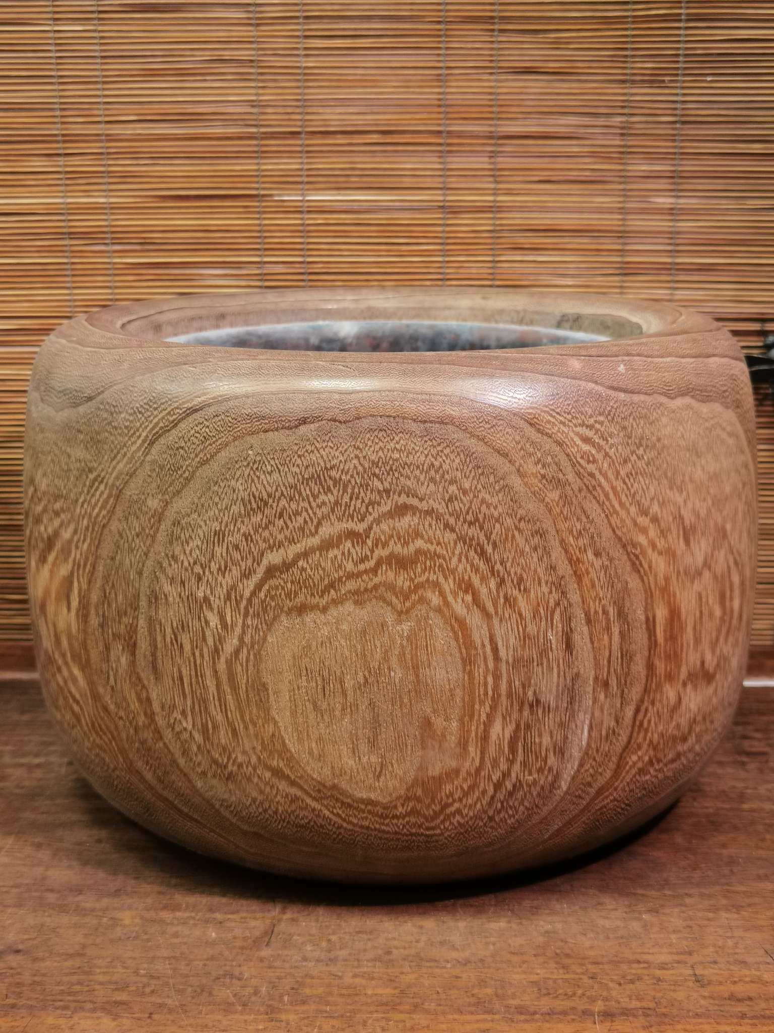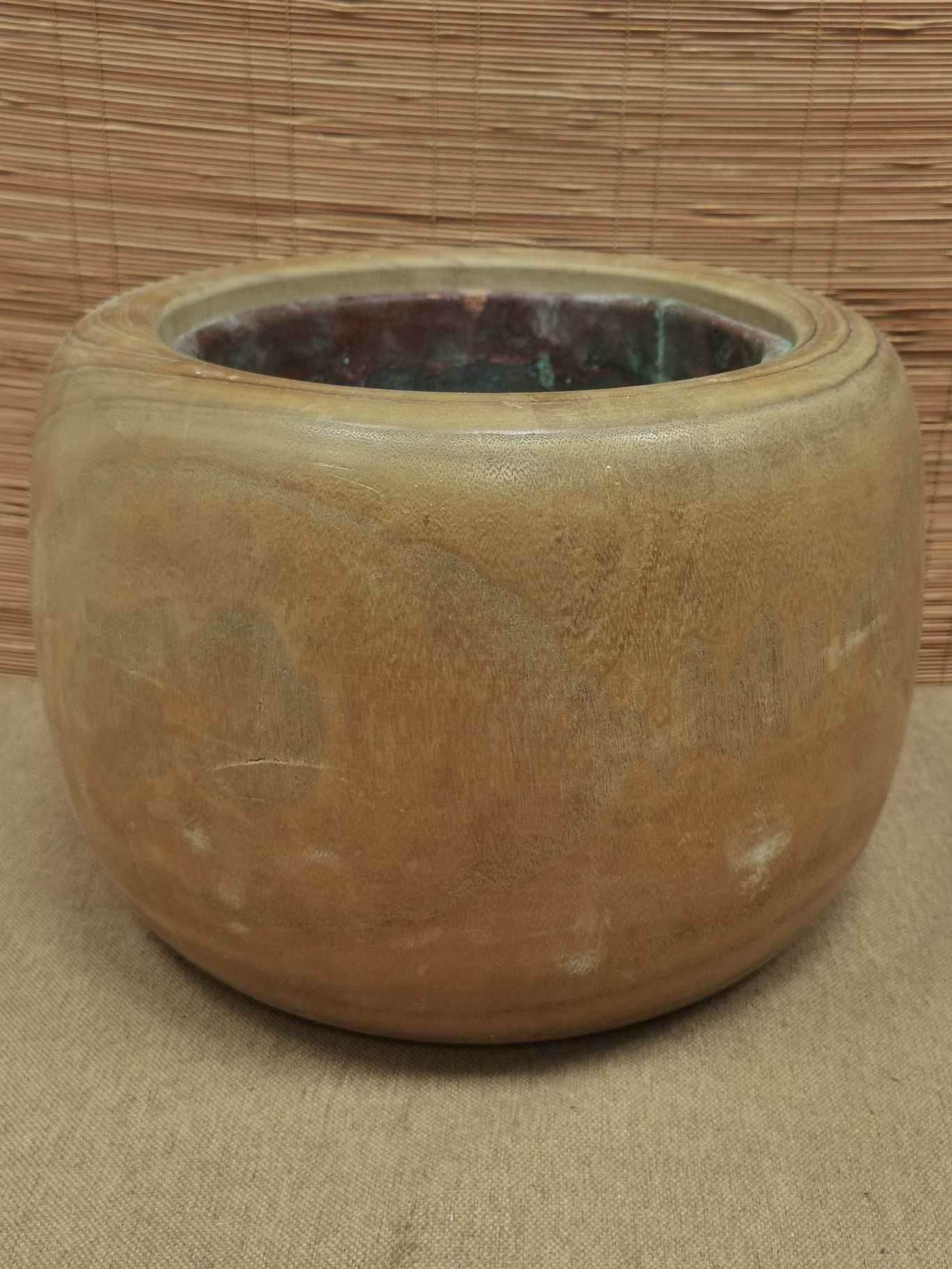 日本老桐木铜胆火钵,外径29厘米,高20厘米,铜胆内径19厘米。