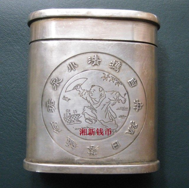 古玩杂项老物件银器收藏 仿白铜镀银旱烟盒纯手工带款足银烟丝盒