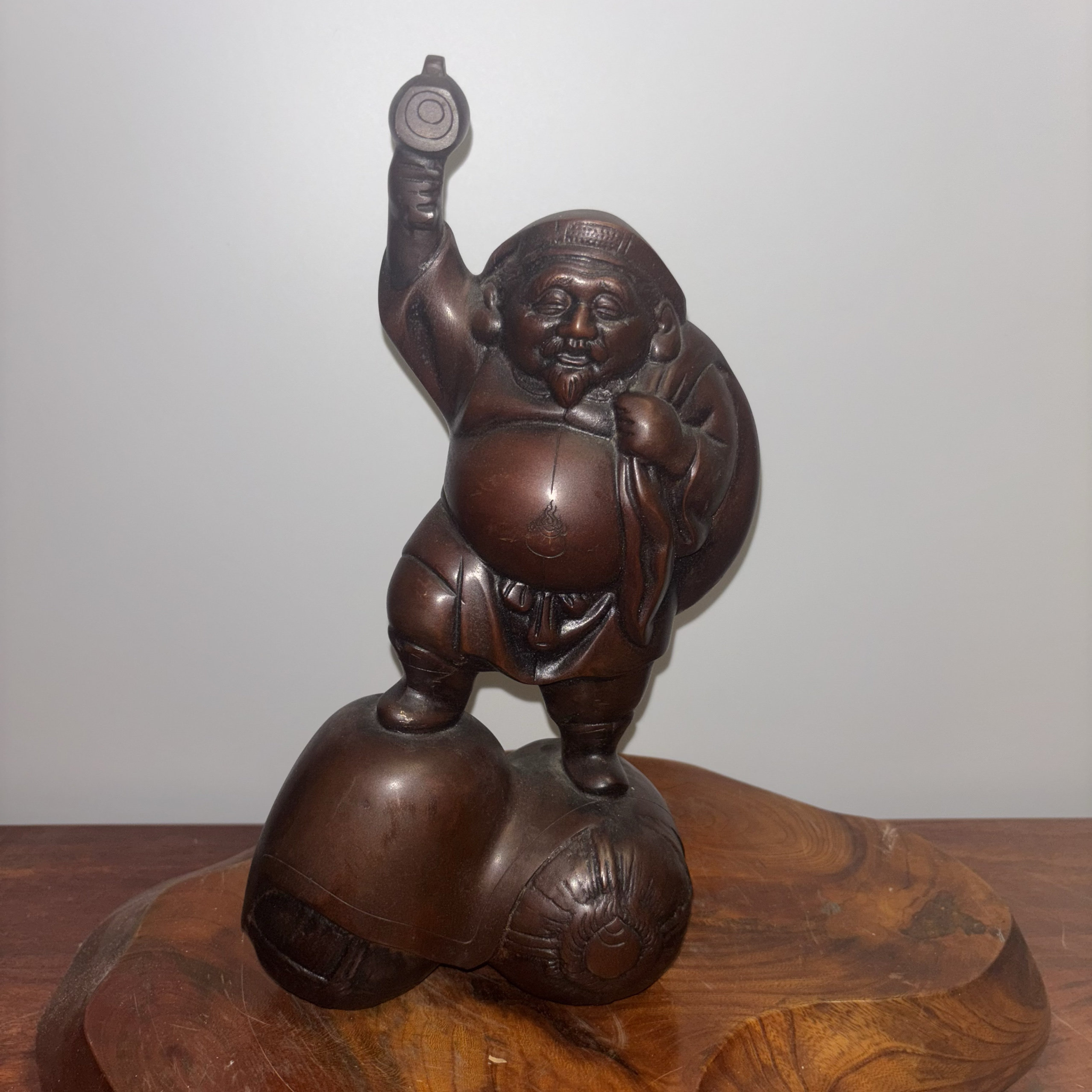 日本老铜制大黑天雕像,重2.1千克,高29.5厘米,宽16厘米