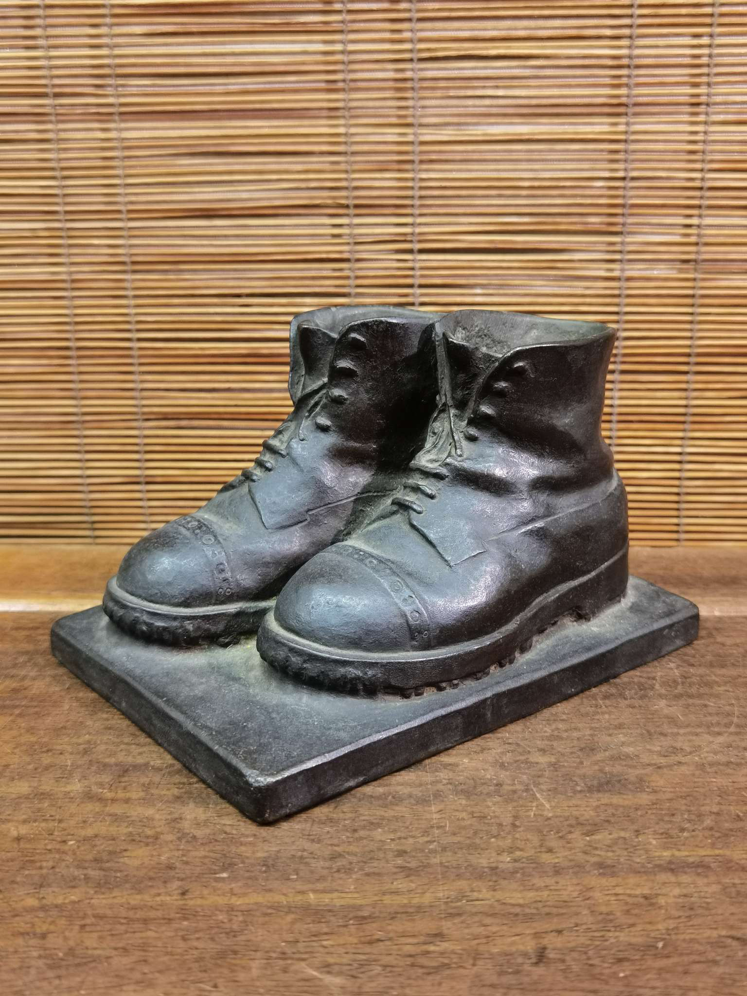 日本带款老铜皮鞋摆件,重1.4千克,长15厘米,宽11厘米,高9厘米