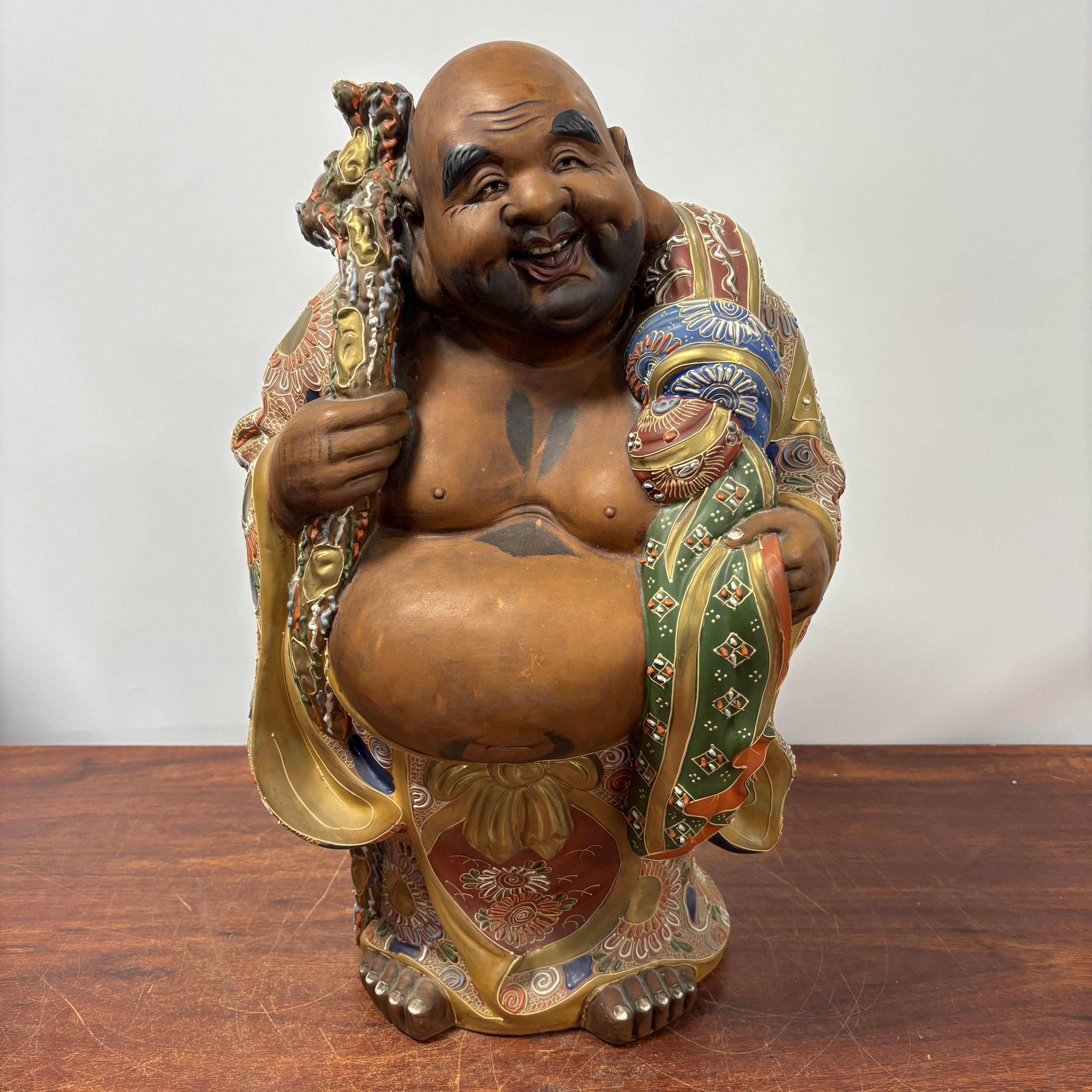 日本九谷老款瓷器布袋和尚, 高52厘米,宽33厘米,很大很重。