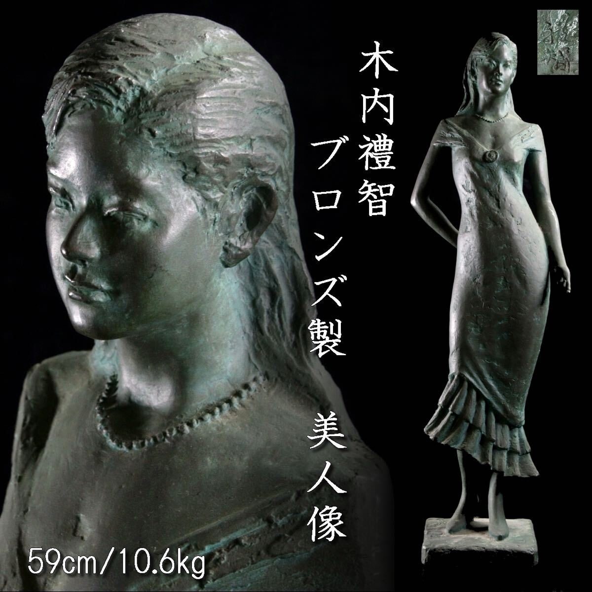 日本木内礼智作老铜美人雕像,重10.6千克,高59厘米,宽16厘米。
