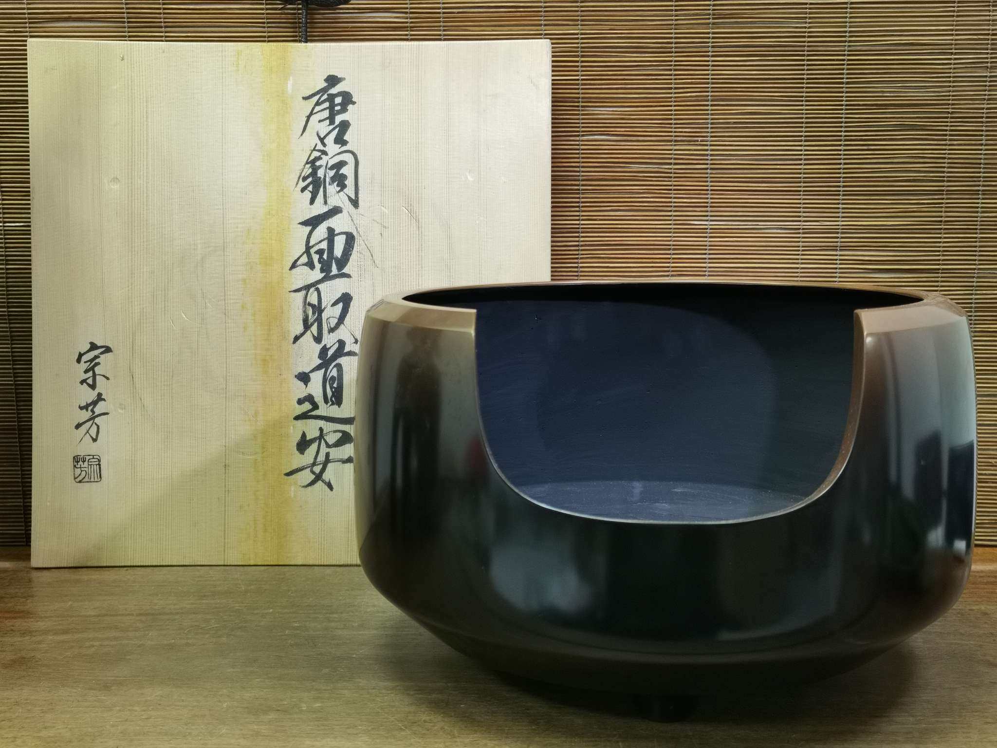 日本带箱老铜风炉,重6.85公斤,外径32厘米,内径28厘米,高20.5