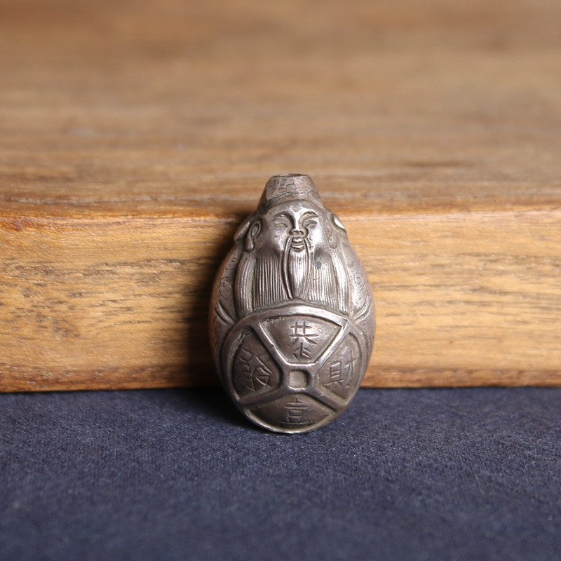 日本进口手工老银器银制大黑天福神财神摆件置物轻奢摆件收藏包邮