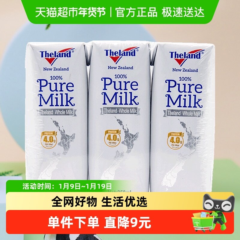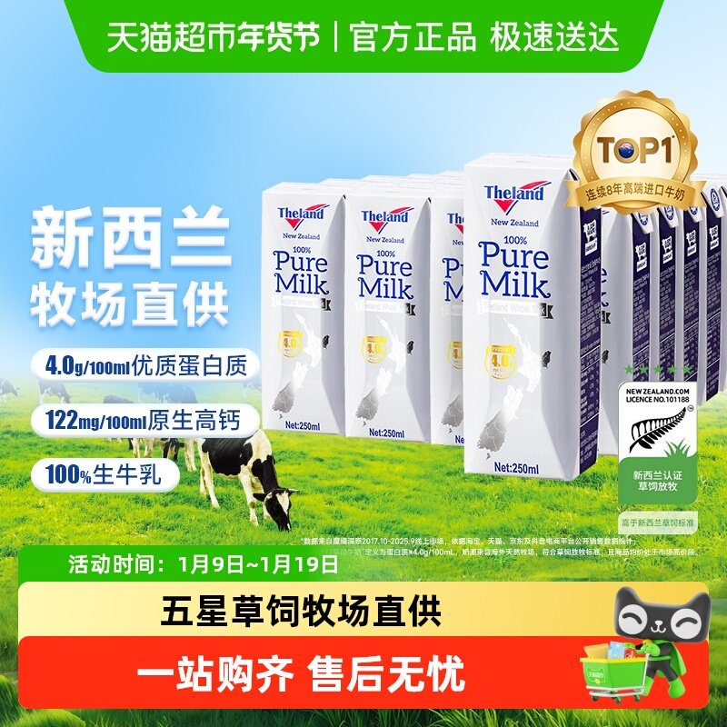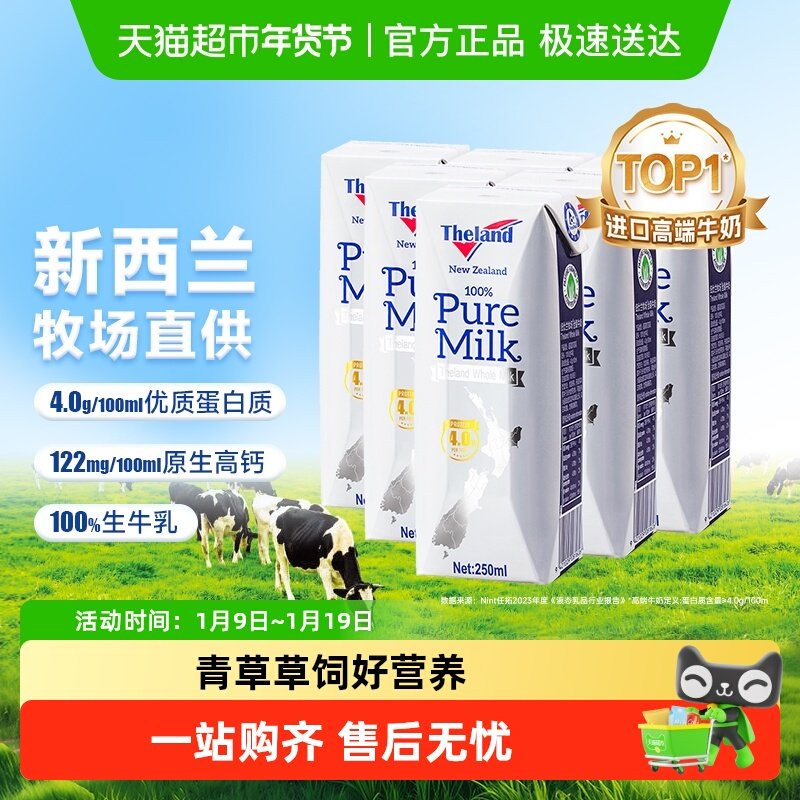 新西兰原装进口Theland4.0蛋白全脂高钙纯牛奶250mlx24