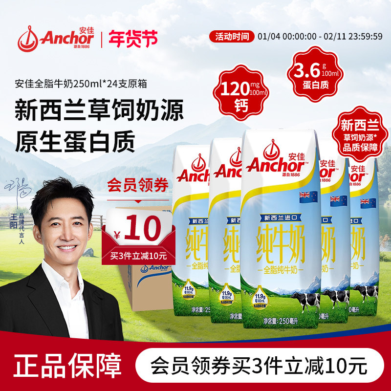 【下拉享优惠】安佳全脂纯牛奶3.6g蛋白质新西兰进口草饲早餐奶