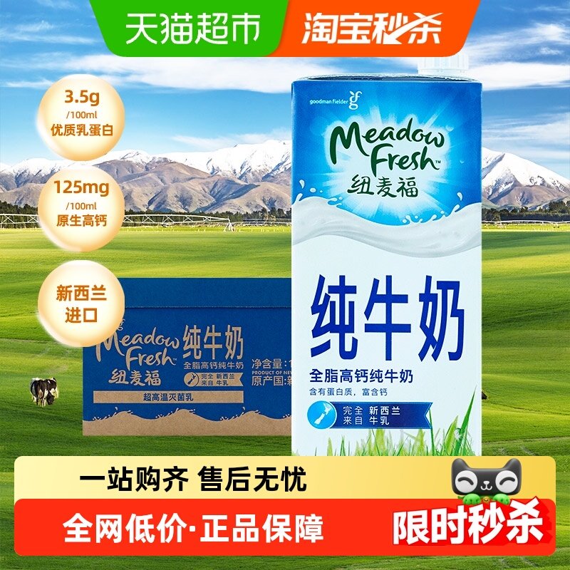 【进口】新西兰纽麦福全脂纯牛奶3.5g蛋白高钙奶1L*12盒