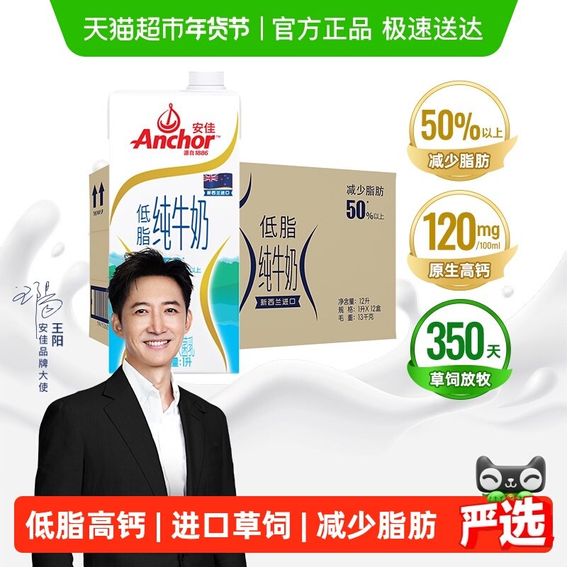 【进口】安佳高钙低脂纯牛奶3.6g蛋白质新西兰进口草饲全家营养奶