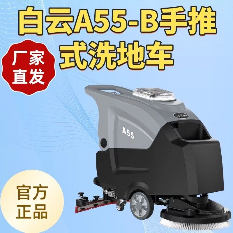 白云手推式电瓶洗地车商用工业车间商场超市地面扫地刷地机A55-B