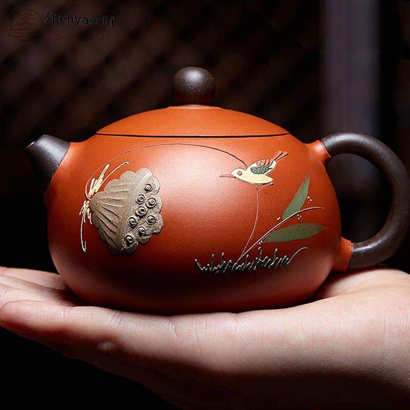 宜兴紫砂壶如意西施原矿朱泥可提可转凤鸣全手工茶具高端家用泡茶