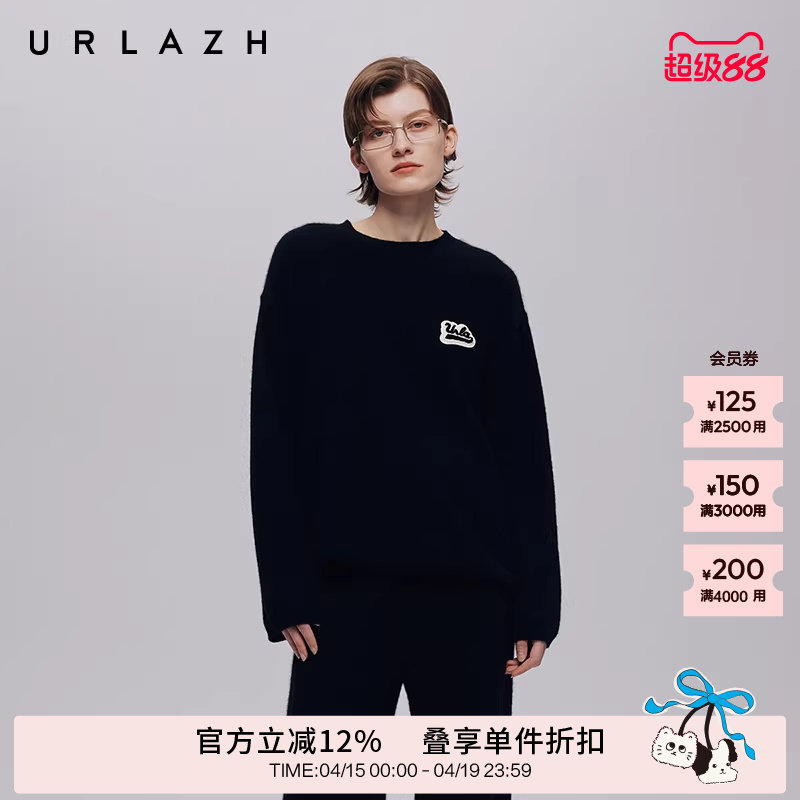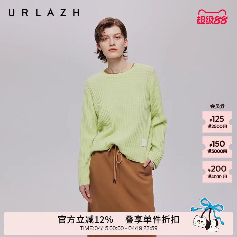 URLAZH有兰秋季新款香草纯色圆领宽松休闲套头软糯羊绒针织毛衣女