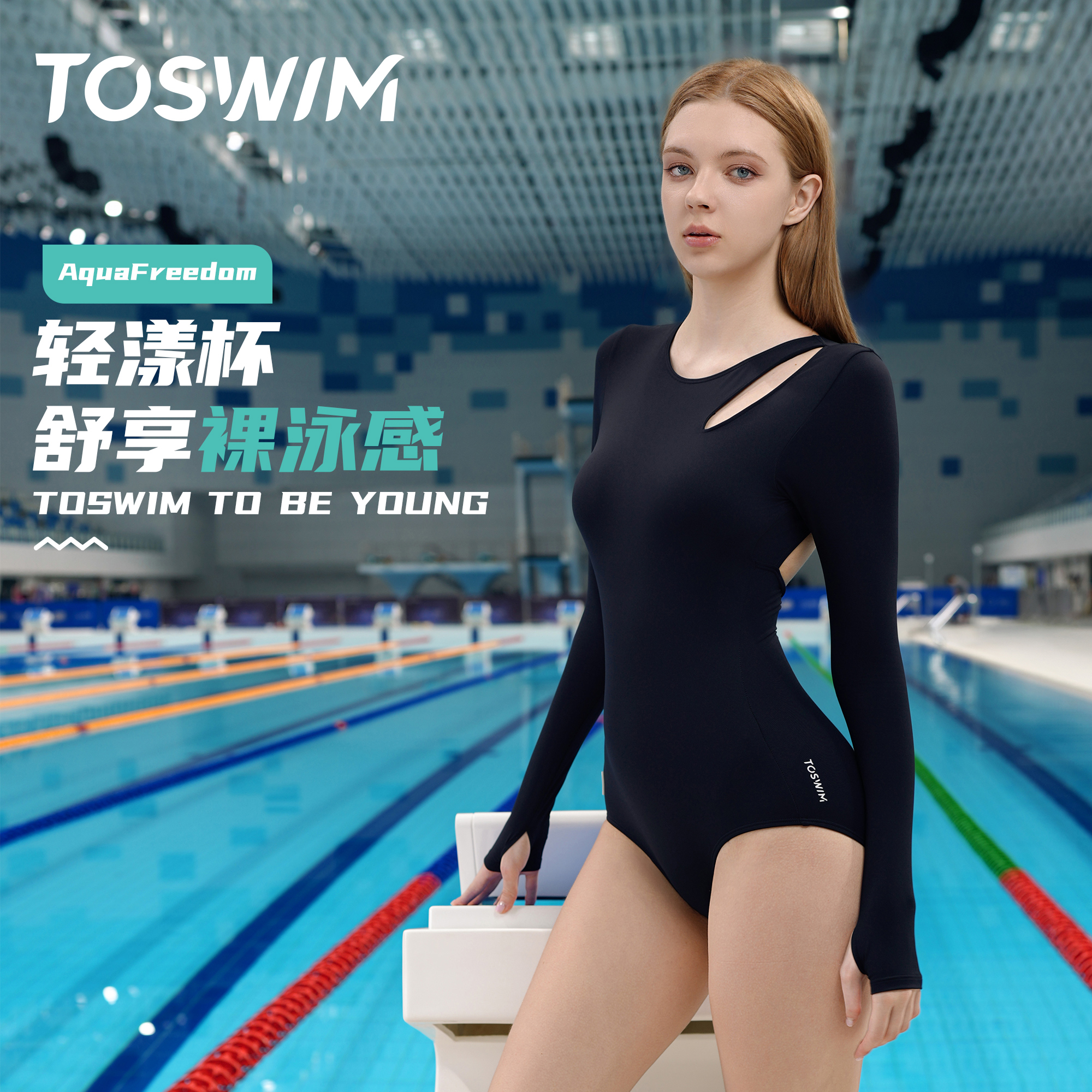 【花少同款】TOSWIM连体三角黑色潜水服女款长袖防晒保守浮潜泳衣